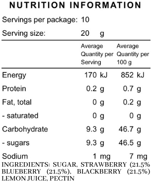 Start your day off right with a sweet and tangy kick! Our Triple Berry Jam is the perfect addition to your morning toast or favourite dessert. Made with a mix of juicy strawberries, plump blueberries, and succulent blackberries, this jam is a game-changer. With its chunky texture and rich berry taste, you'll want to spread it on everything!